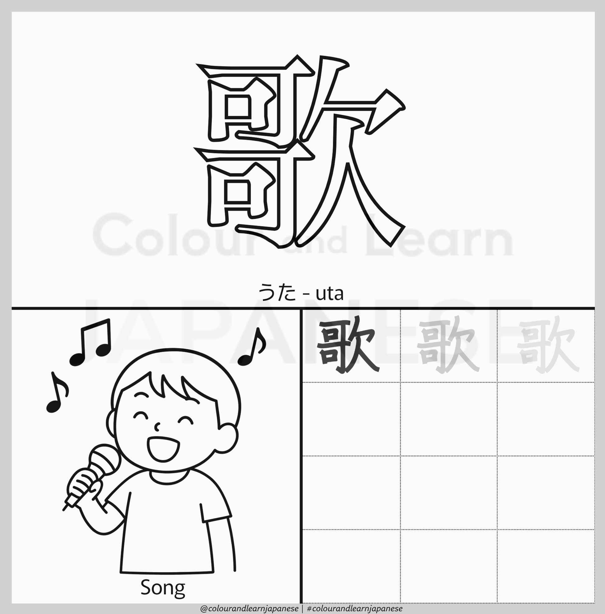 This Colour and Learn Japanese printable pack 5 of 5, "Read, Write and Sing!", is based on "At Home and School-Nouns" taken at the JLPT N5 level! Each sheet features carefully curated essential vocabulary with Kanji, hiragana, romaji, and cute kawaii-style illustrations for colouring and tracing practice.
