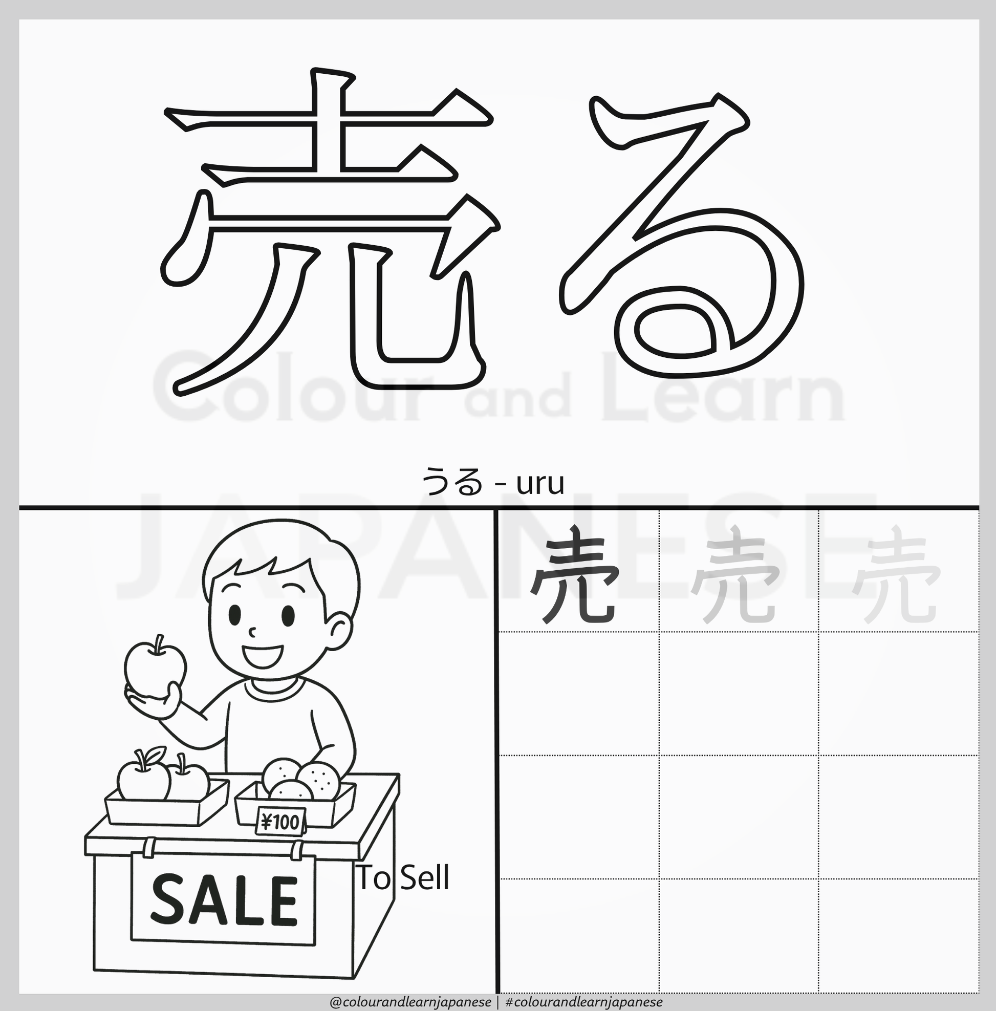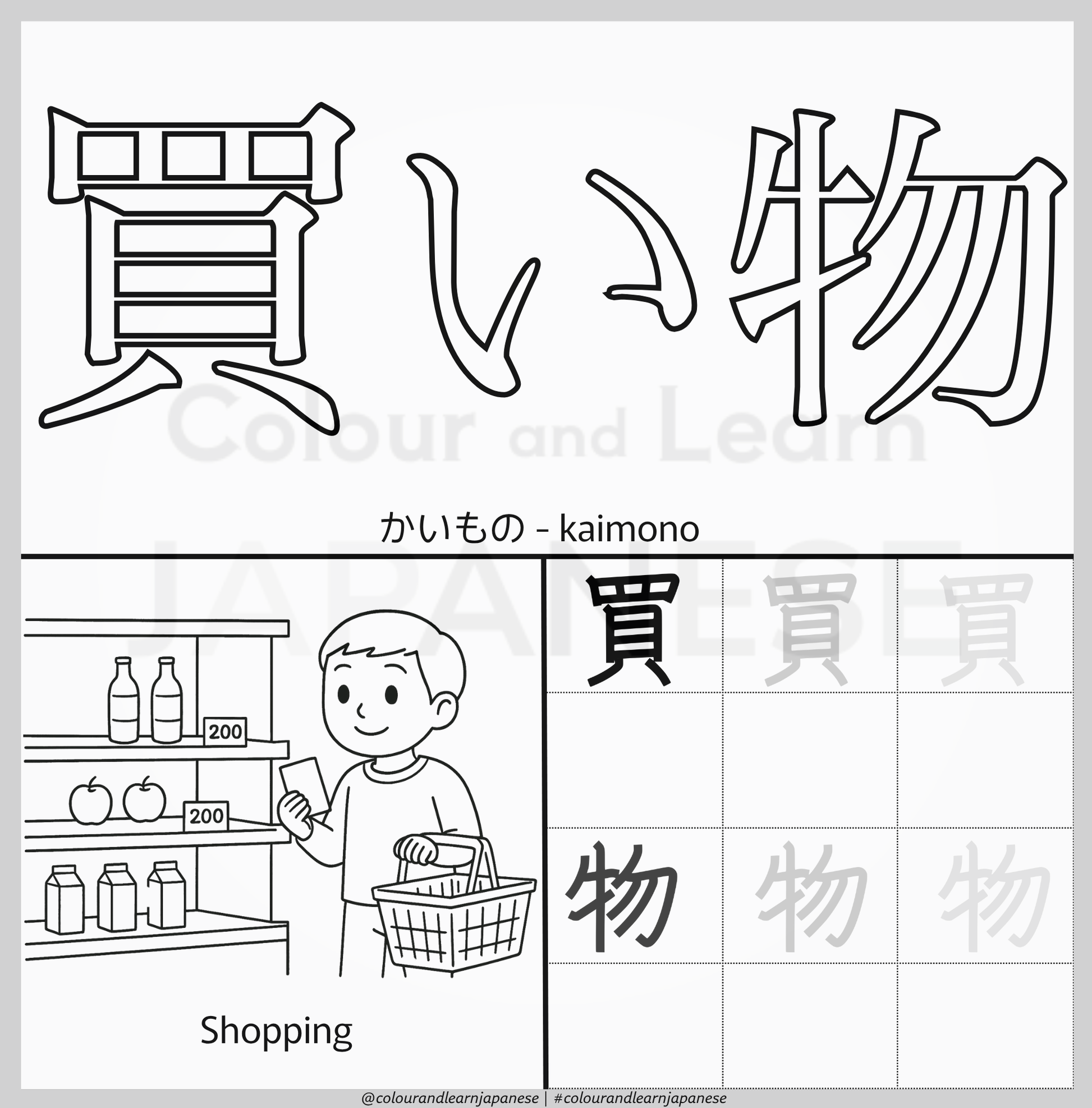 This Colour and Learn Japanese printable pack 6 of 9, "Let's Go Shopping!", is based on "Everyday Actions-Verbs" taken at the JLPT N5 level! Each sheet features carefully curated essential vocabulary with Kanji, hiragana, romaji, and cute kawaii-style illustrations for colouring and tracing practice.